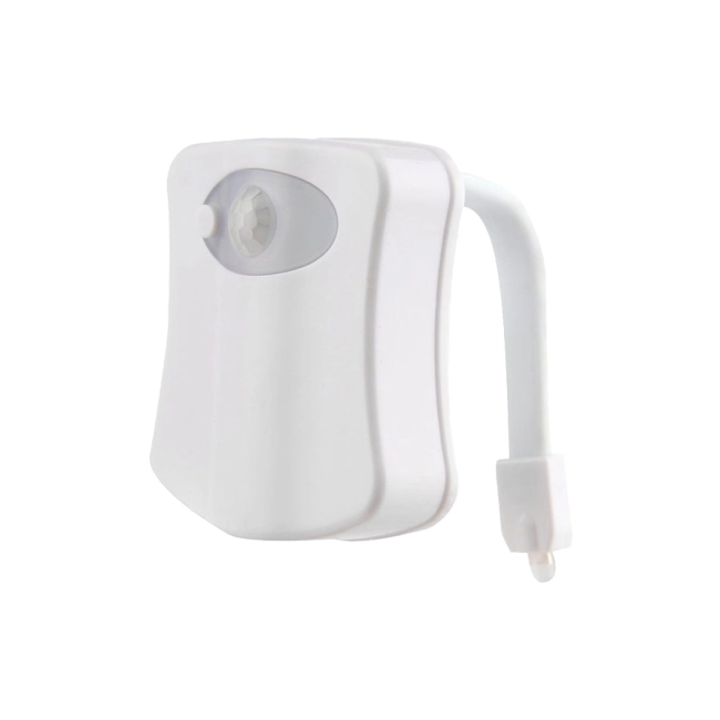 - Благодаря гнущейся ручке из пластичного полимера, LED подсветка для унитаза с датчиком движения легко устанавливается на любую форму туалетного сидения. Для снятия светильника, достаточно применить минимальные усилия, чтобы разогнуть крепеж;